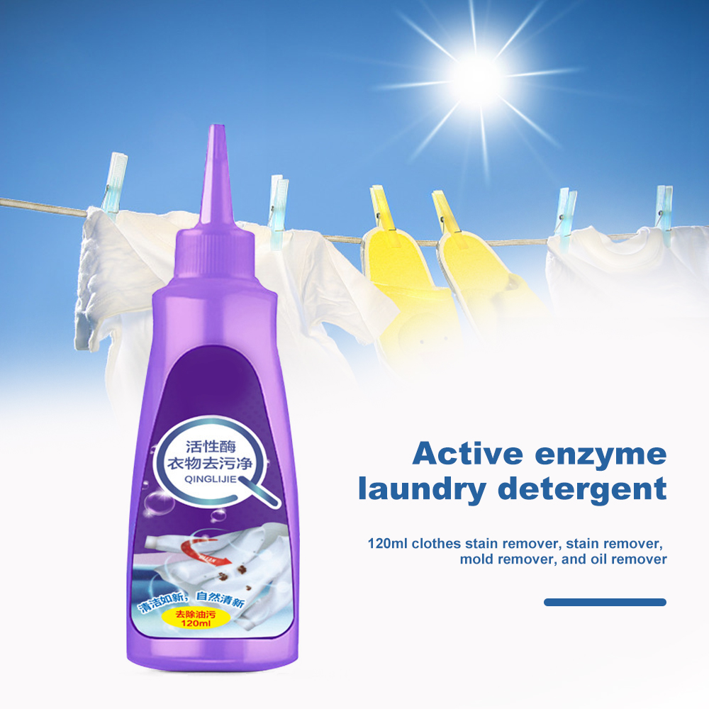 عامل تنظيف فعال:-نشط انزيم الملابس تنظيف رذاذ شرائط البقع في حل ويزيلها بالماء. كما أنه يحتوي على المروجين التنظيف التي تمنع البقع من resticking وإزالتها تماما.